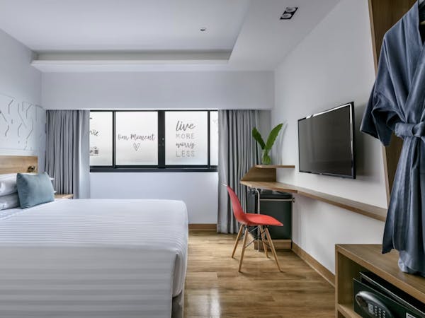 Designed for modern travelers, this cozy room features a plush king-size bed, smart layout, and minimalist décor — perfect for a relaxing stay near Bangkok’s top attractions.
