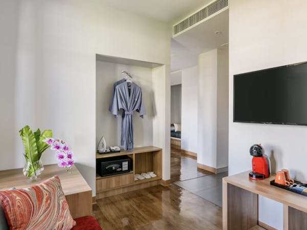 Step into comfort and sophistication in our spacious suite — featuring a separate sitting area, elegant décor, and thoughtful touches for an elevated Bangkok stay.