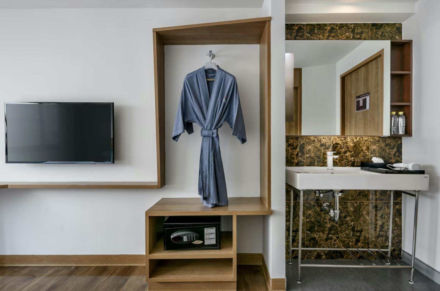 A stylish and functional room with two comfy twin beds — ideal for friends or family who want to explore, recharge, and stay connected in vibrant Ratchathewi.